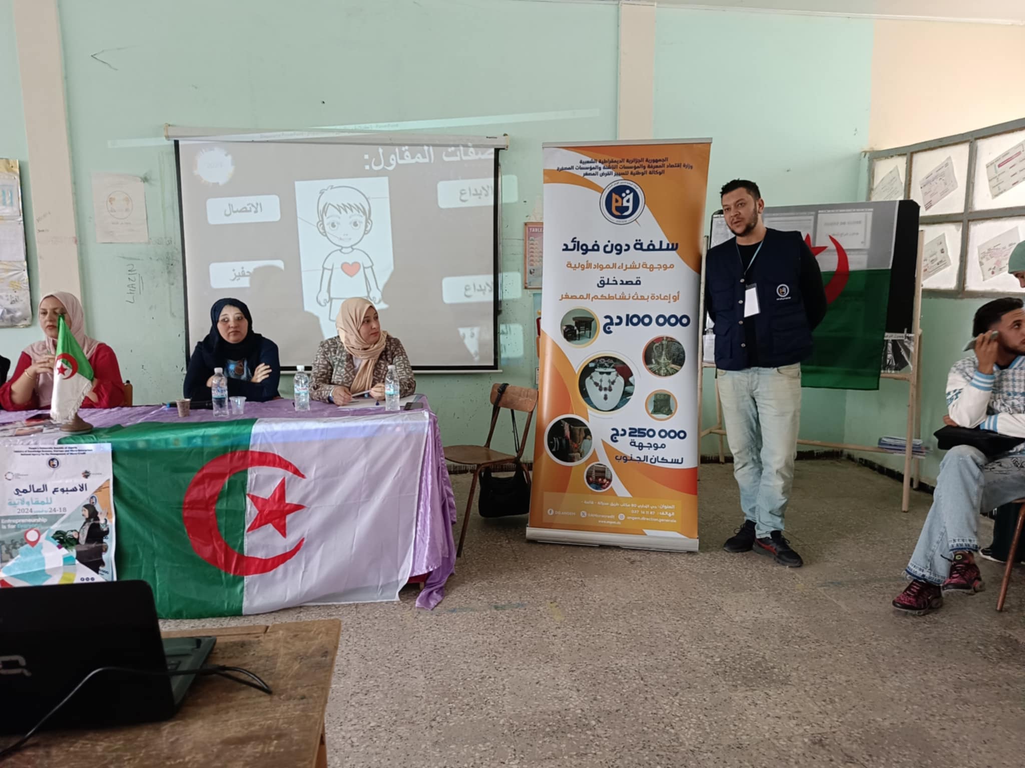 .ورشة فكرة مشروع التعريف بالمقاولاتية والمقاول الذاتي بحضور التكوين المهني صاب علي ودار المرافقة والادماج المهنية قالمة و الوكالة الوطنية القرص المصغر قالمة ومديرية الصناع