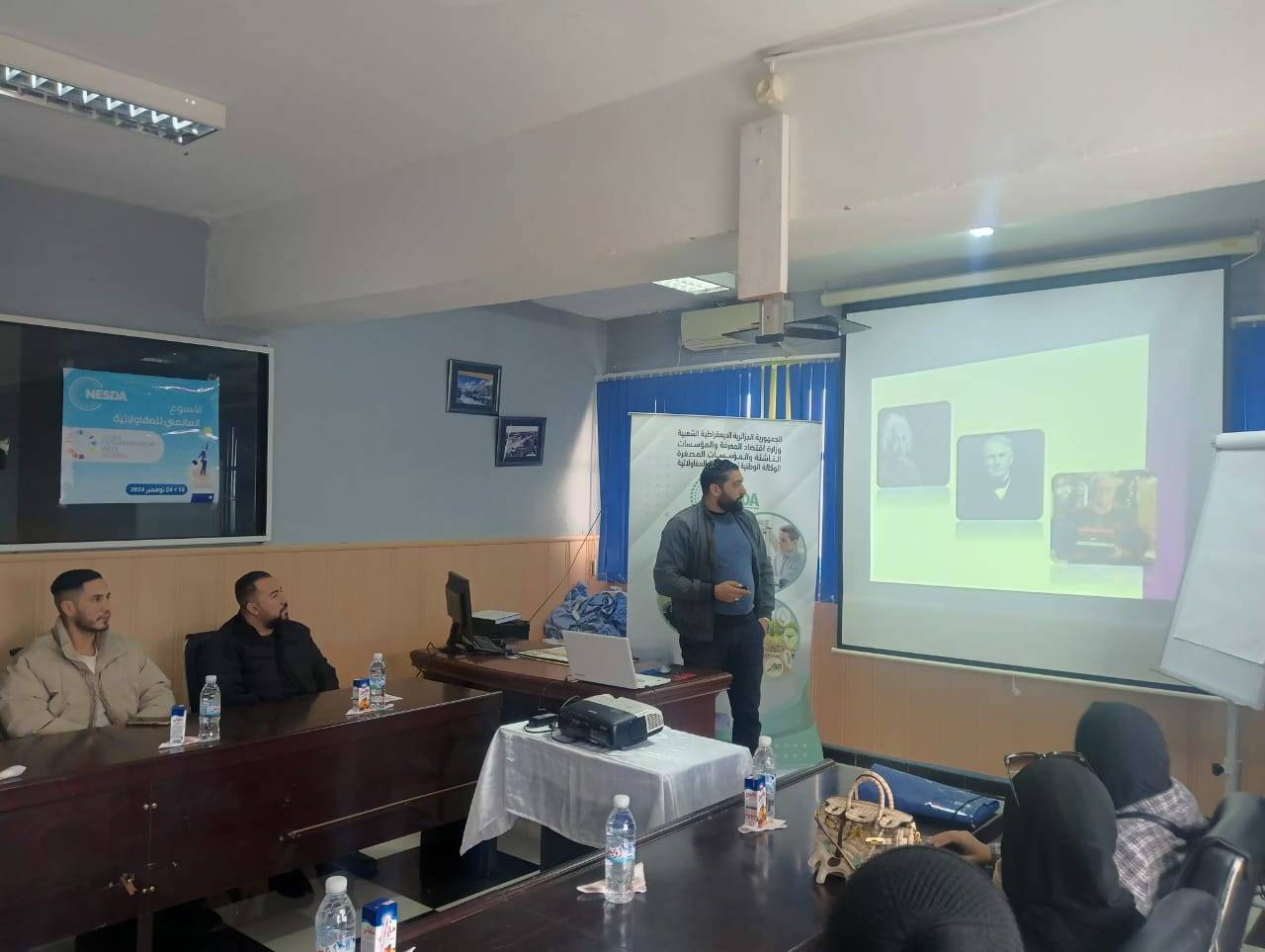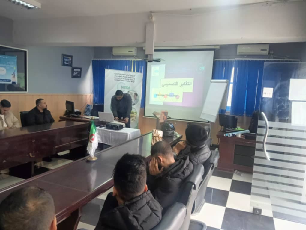 م ورشة بعنوان التفكير التصميمي من طرف وكالة nesda وبمشاركة مديرية الصناعة لولاية قالمة وهذا بالمقر الفرعي هيليوبوليس وبحضور الشباب حاملي المشاريع حيث تم نقديم شروحات حول التفكير التصميمي لإنشاء مشاريع مختلفة