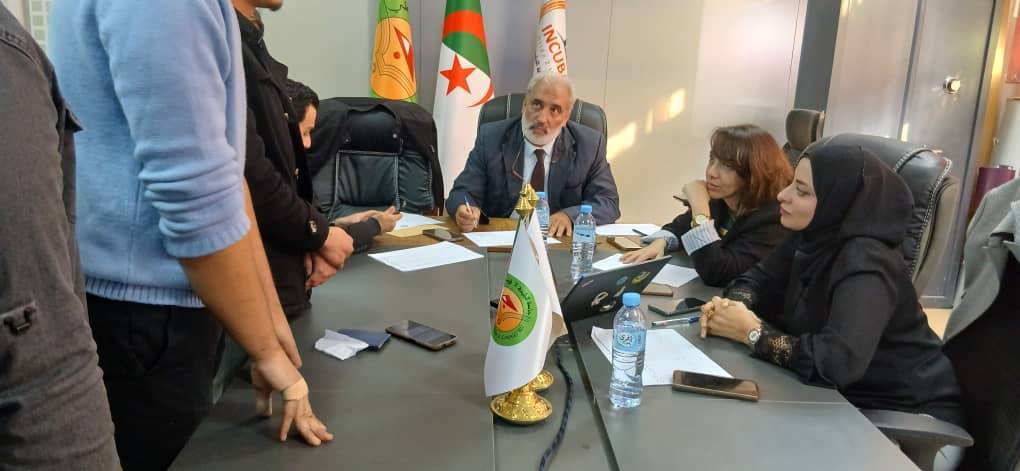 اجتماع قيادي لضمان الاحترافية: ترأس الاجتماع البروفيسور سعيد بوخاوش (نائب مدير الجامعة المكلف بالبيداغوجيا)، وحضره قادة الواجهات الاقتصادية بالجامعة (مدراء الحاضنة، مركز تطوير المقاولاتية، مكتب الربط، ومركز الدعم التكنولوجي). كما حظيت الجلسة بمشاركة هامة من السيدة حنان بوحفص (مديرة الوكالة الوطنية لدعم وتنمية المقاولاتية)، مما يعزز البعد العملي والاحترافي لعملية الانتقاء وتأطير المشاريع مستقبلاً.