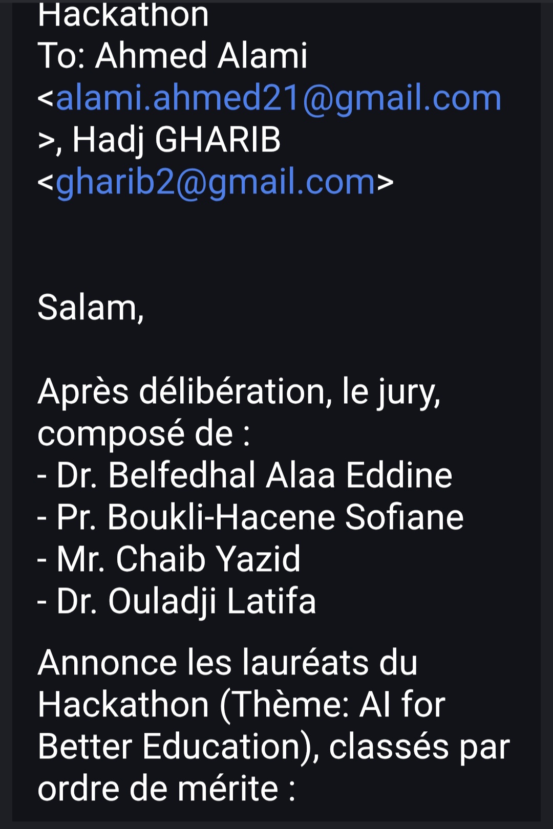 انتقاء ثلاثة (03) مشاريع نهائية فائزة في الهاكاثون