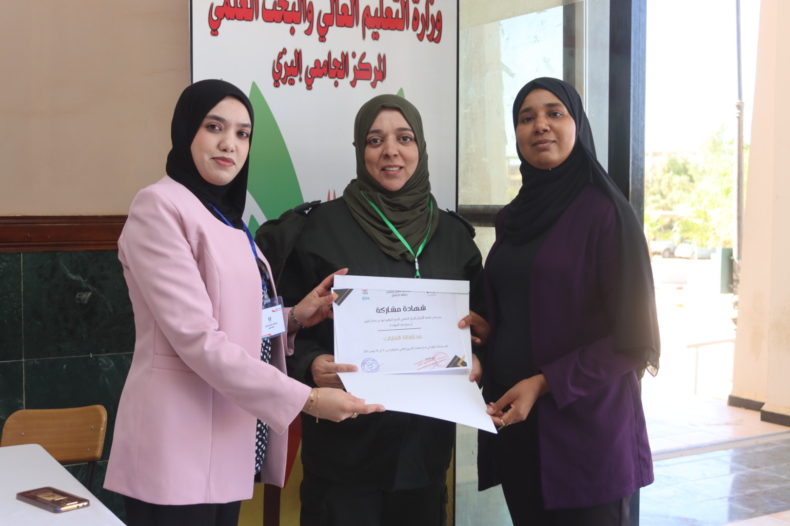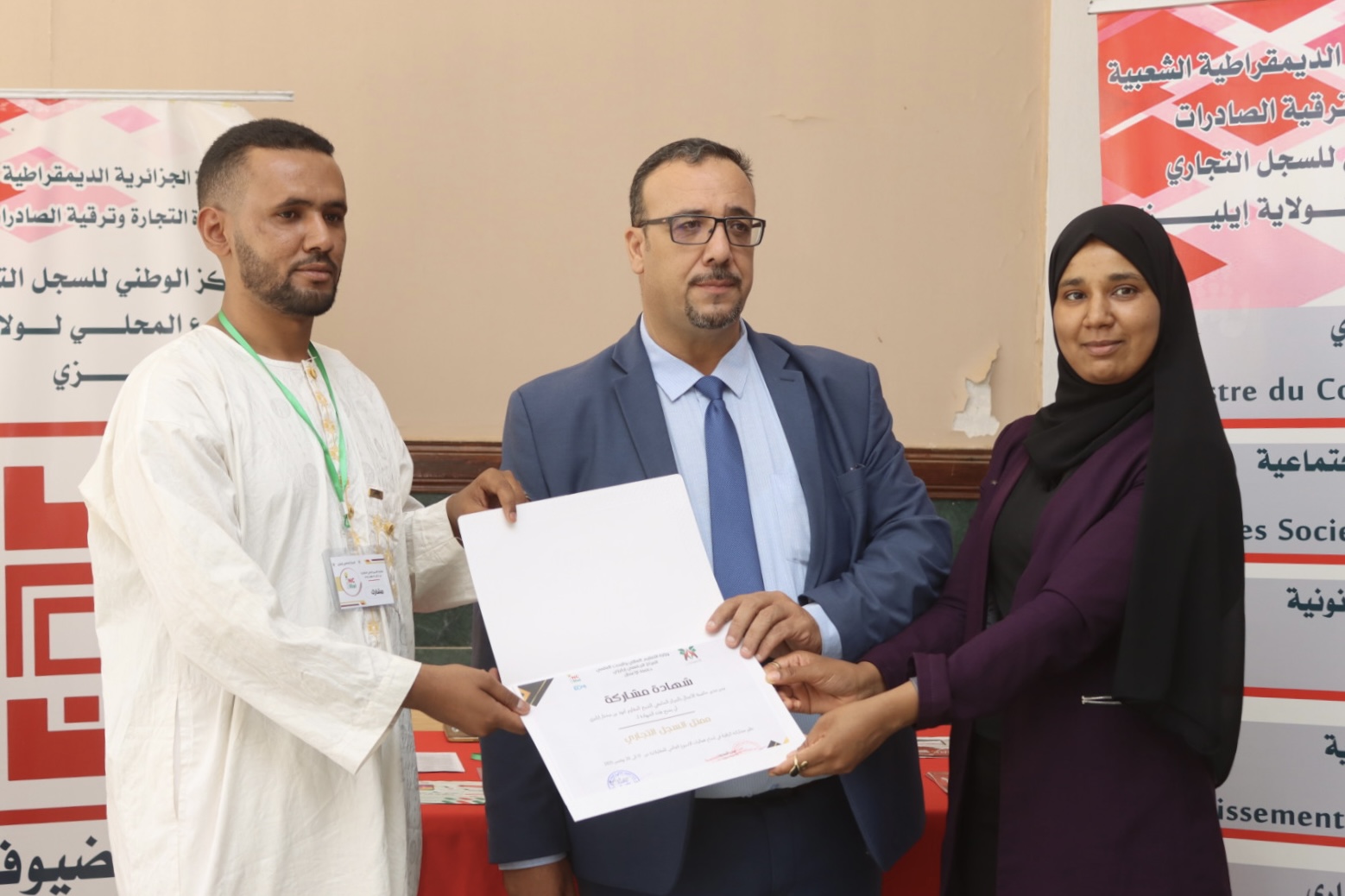 Following the successful launch of the Professional Exhibition at the University Center of Illizi, held as part of Global Entrepreneurship Week 2025, the University Center proudly recognized and honored the participants who contributed to the event’s success.
