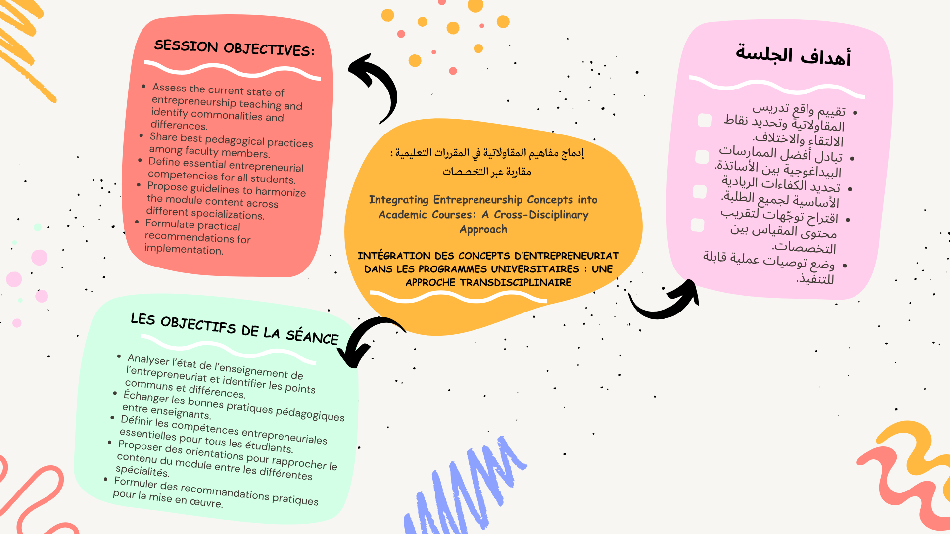 جلسة نقاش مفتوح بين مختلف الكليات حول محاولة إيجاد الإطار العام المتقارب لتدريس مقياس المقاولاتية، من خلال أسئلة مثل: