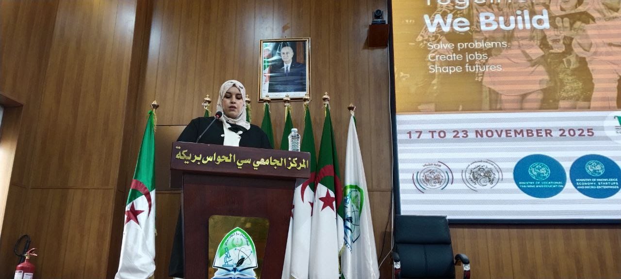 على مستوى المركز الجامعي بداية فعاليات الاختتام بكلمة ممثلة واجهات المركز الجامعي