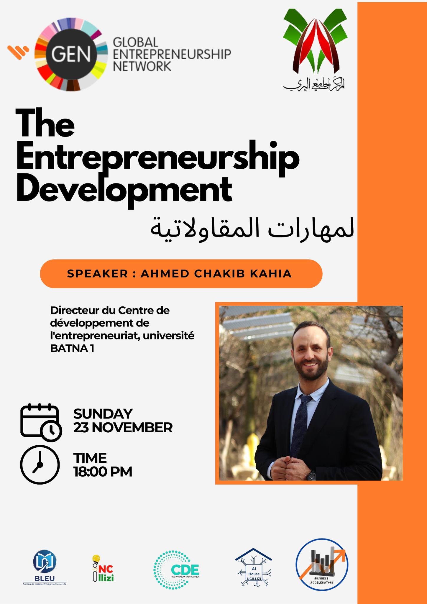 These professional sessions, held as part of the Global Entrepreneurship Week – BLEU, provide an interactive platform bringing together entrepreneurs, experts, and innovators to exchange practical knowledge and experience in the field of entrepreneurship. The sessions focus on developing entrepreneurial skills, strategies for establishing and managing projects, and exploring opportunities for innovation and investment. They also offer an ideal environment for professional networking, learning from successful experiences, and building strategic connections that enhance participants’ chances of achieving sustainable success in the world of entrepreneurship.
