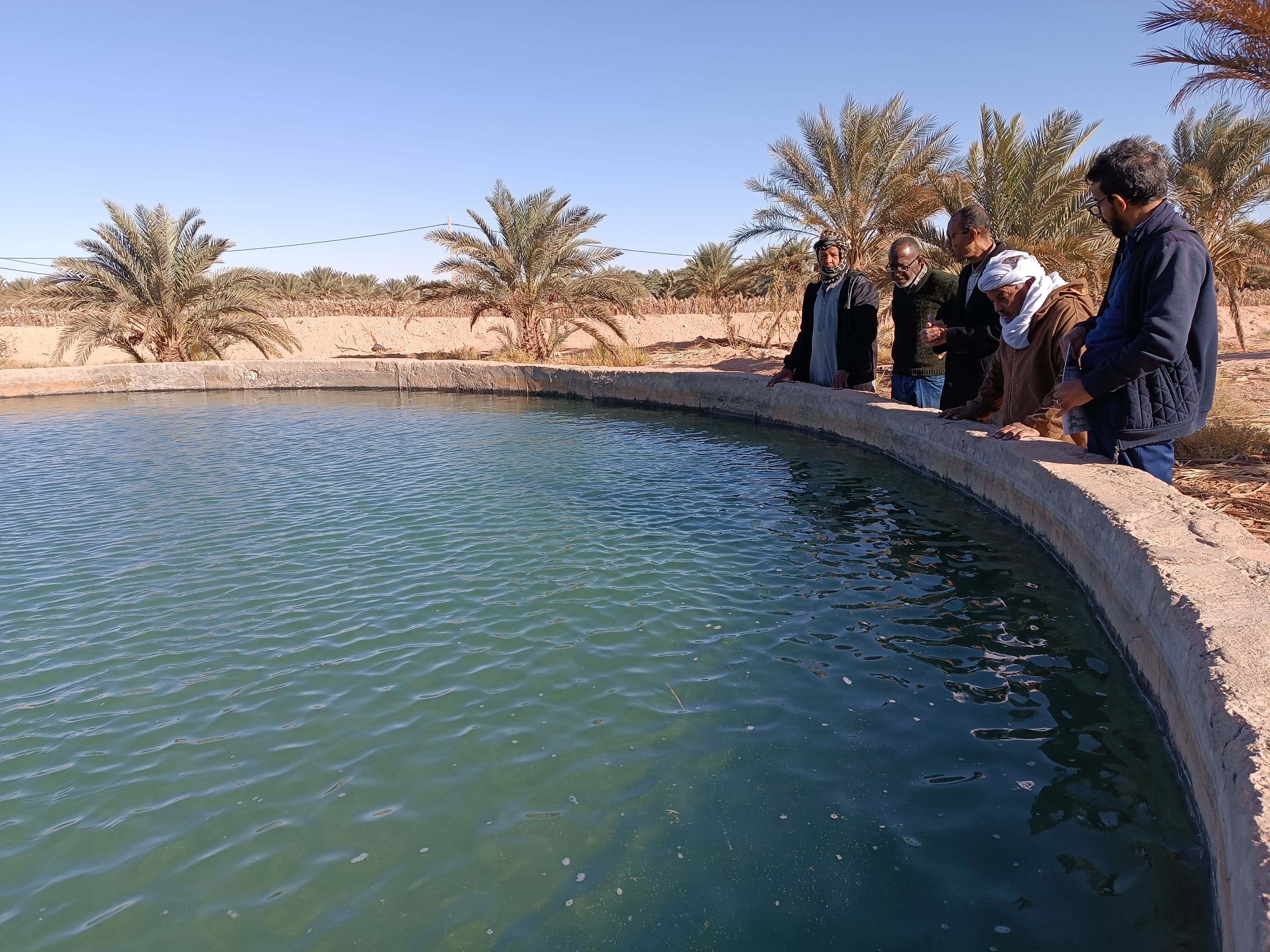 Poursuite du programme en cours avec la Direction de la Pêche et de l'Aquaculture de la wilaya d'Illizi. Le responsable de la communication, accompagné des cadres de la Direction de la Pêche et de l'Aquaculture, a poursuivi les sorties sur le terrain auprès des investisseurs agricoles. L'objectif était de sensibiliser les agriculteurs intéressés par l'activité d'aquaculture aux avantages du dispositif NESDA, que ce soit pour l'extension ou la diversification de leurs activités. Cela a inclus certains agriculteurs présents dans le périmètre agricole Aouinet Moussa, relevant de la commune N'goussa.