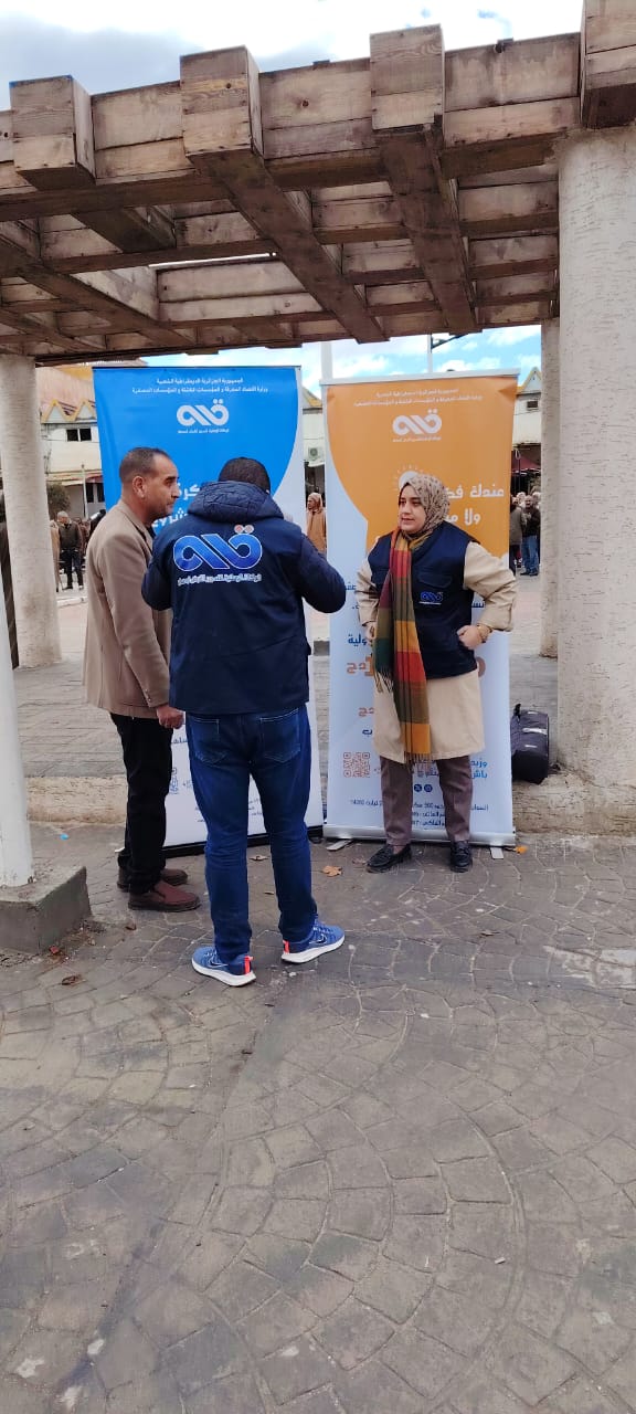 تنظيم يم اعلامي تحسيسي على مستوى الساحة العمومية "مسجد أبو بكر الصديق بلدية تيسمسيلت " للتعريف بالخدمات المالية و غير المالية التي