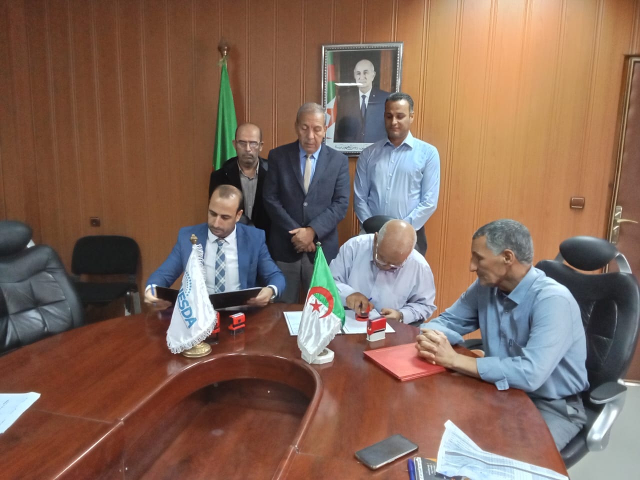 -و من جهة اخرى  تم اليوم على مستوى مديرية التكوين و التعليم المهنيين بالوادي و بحضور السيد مدير الوكالة الوطنية لدعم و تنمية المقاولاتية الوادي و مدير مديرية التكوين و التعليم المهنيين و كذا مديرا كل من المعهد الوطني المتخصص للاشغال العمومية و البناء بالشط و المعهد الوطني المتخصص للفلاحة ببلدية حساني عبد الكريم و ذلك قصد امضاء الاتفاقية بين الوكالة و المعهدين السالف ذكرهما