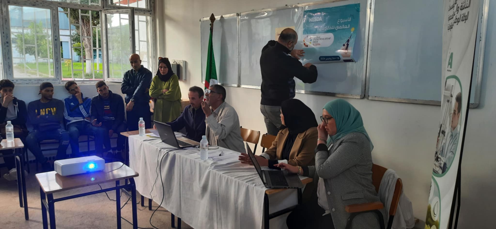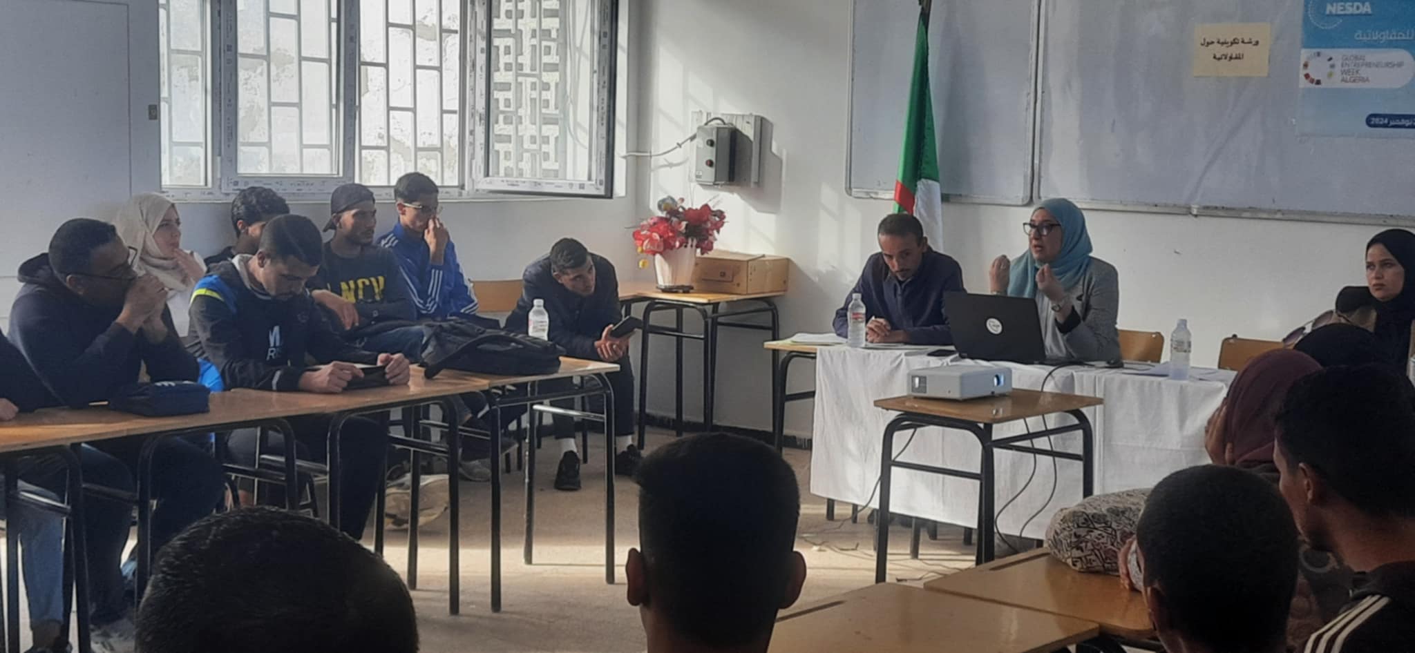 إحياء فعاليات الأسبوع العالمي المقاولاتية في يومه الثالث من خلال ورشة تفاعلية بحضور الطلبة المتكونين بالمعهد، حيت تم تقديم مداخلات و شروحات حول فكرة المقاولاتية و التعريف بأليات الدعم