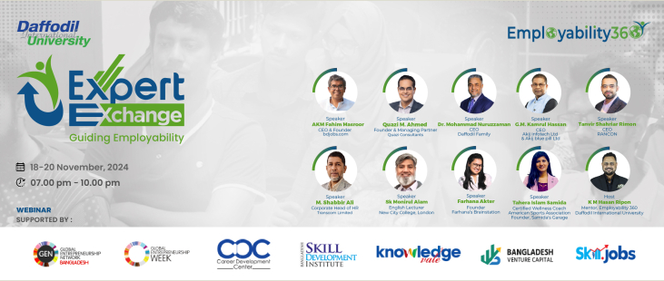 Dhaka, Bangladesh — November 20, 2024: The three-day webinar series “Expert Exchange: Guiding Employability”, organized by Employability 360, concluded on a high note, with over 350 students joining the final day. The engaging sessions by renowned speakers emphasized the importance of mental well-being and essential soft skills for thriving in the professional world.