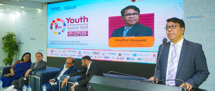 Speaking to the young and aspiring innovators at the Youth Entrepreneurship Summit held at Daffodil International University, he began with an inspirational message. "For those of you in front of us, your lives are full of colorful dreams. But to turn those dreams into reality, you need the drive, the strength, and the education, and all those opportunities are right here in front of you. It is you who will take Bangladesh to new heights."