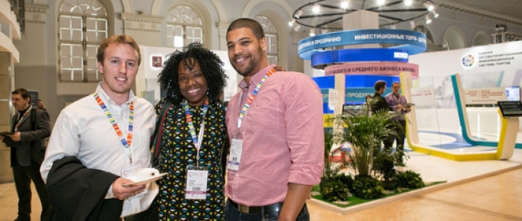 Connor Burns, Jamillah Lodge (from the Bermuda Economic Development Corp, the GEW host organization in Bermuda) and EJ Burrows at the Global Entrepreneurship Congress in Moscow last year.
