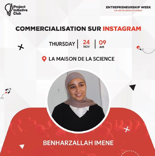 Nous sommes heureux de vous annoncer une autre formation de la semaine d’entrepreneuriat qui portera sur comment commercialiser sur Instagram et elle sera animée par madame BENHAREZALLAH IMENE