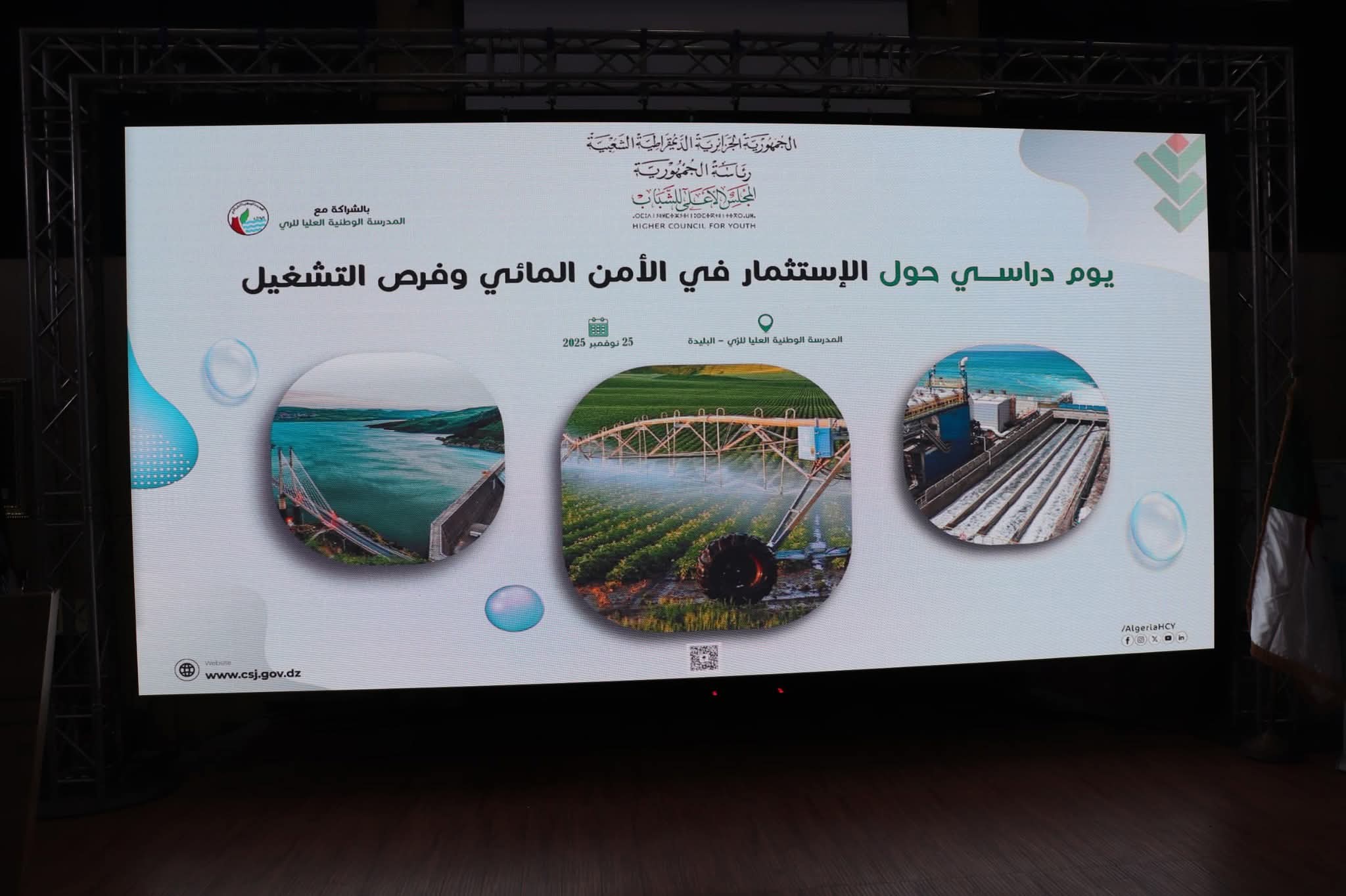 ️أشرف رئيس المجلس الأعلى للشباب، السيد مصطفى حيداوي، على اختتام فعاليات اليوم الدراسي حول الاستثمار في الأمن المائي وفرص التشغيل المنظم من طرف المجلس بالشراكة مع المدرسة الوطنية العليا للري، وذلك بحضور والي ولاية البليدة السيد جمال الدين حصحاص، إلى جانب رئيس لجنة البيئة والتنمية المستدامة بالمجلس وممثلي مختلف القطاعات والمؤسسات المشاركة.
