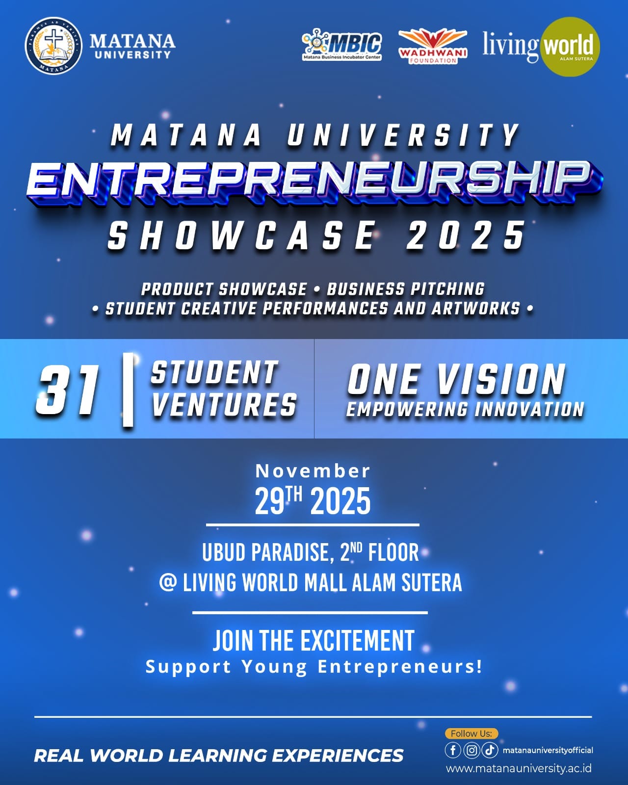 As a flagship program, the Entrepreneurship Showcase has proven successful in previous campus implementations, receiving high enthusiasm from students, lecturers, and visitors. By being held at Living World Alam Sutera—known as a mall with the concept of “Home Living, Lifestyle & Eat-tainment,” and its commitment to community development and visitor experience—the event carries even greater strategic value, including: