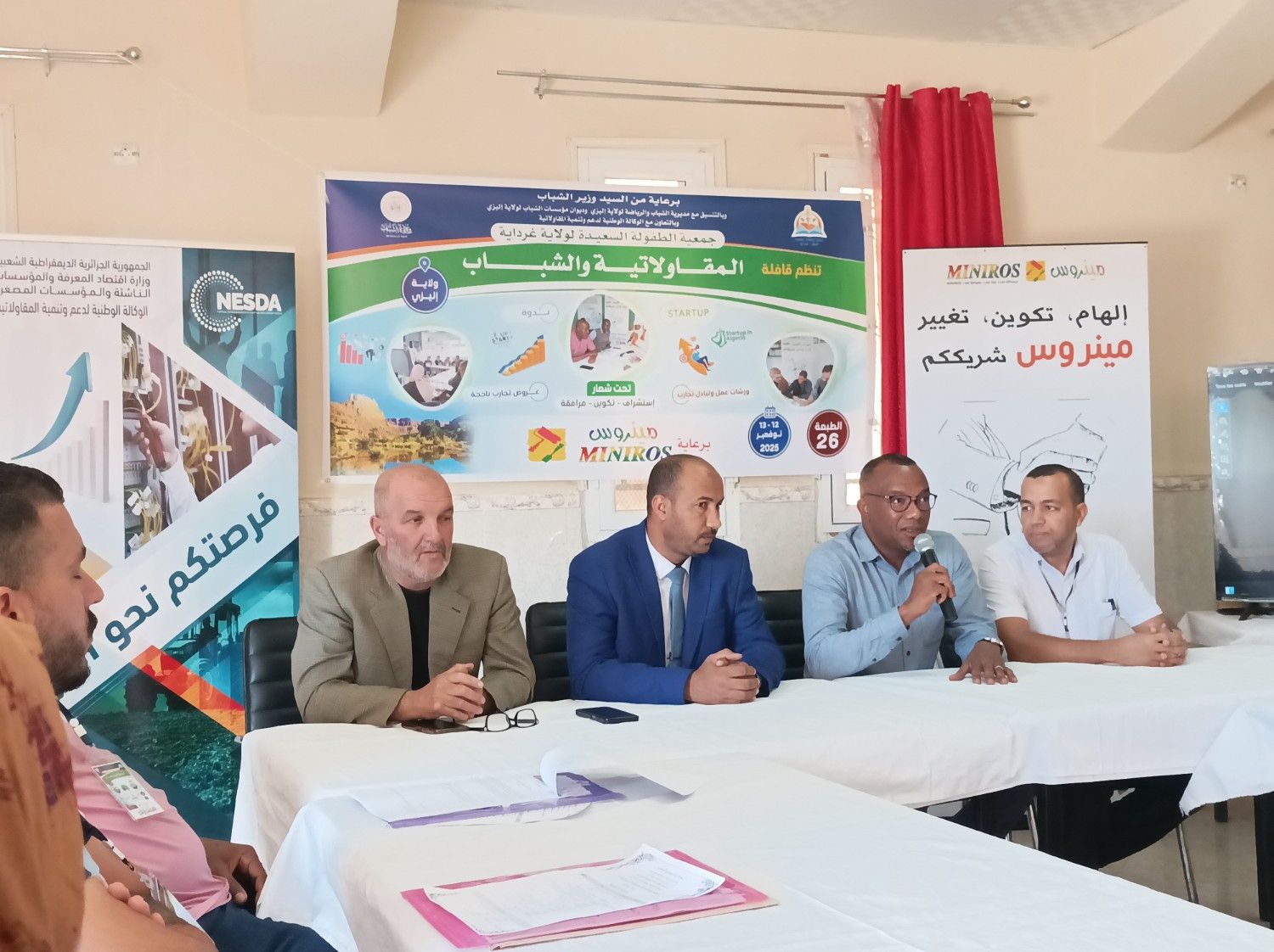استهل  صبيحة يوم 12 نوفمبر2025 اللقاء مدير الشباب و الرياضة  لولاية إيليزي  بكلمة ترحيبيبة للمشاركين كما نوه بجهود جمعية الطفولة السعيدة لولاية غرداية في مشروعها الرائد لغرس ثقافة المقاولاتية لدى الجمعيات الشبانية و الشباب عامة من خلال صناعة الوعي و دعم جهود وزارتي الشباب و الرياضة و وزارة إقتصاد المعرفة و المؤسسات الناشئة و المؤسسات المصغرة .