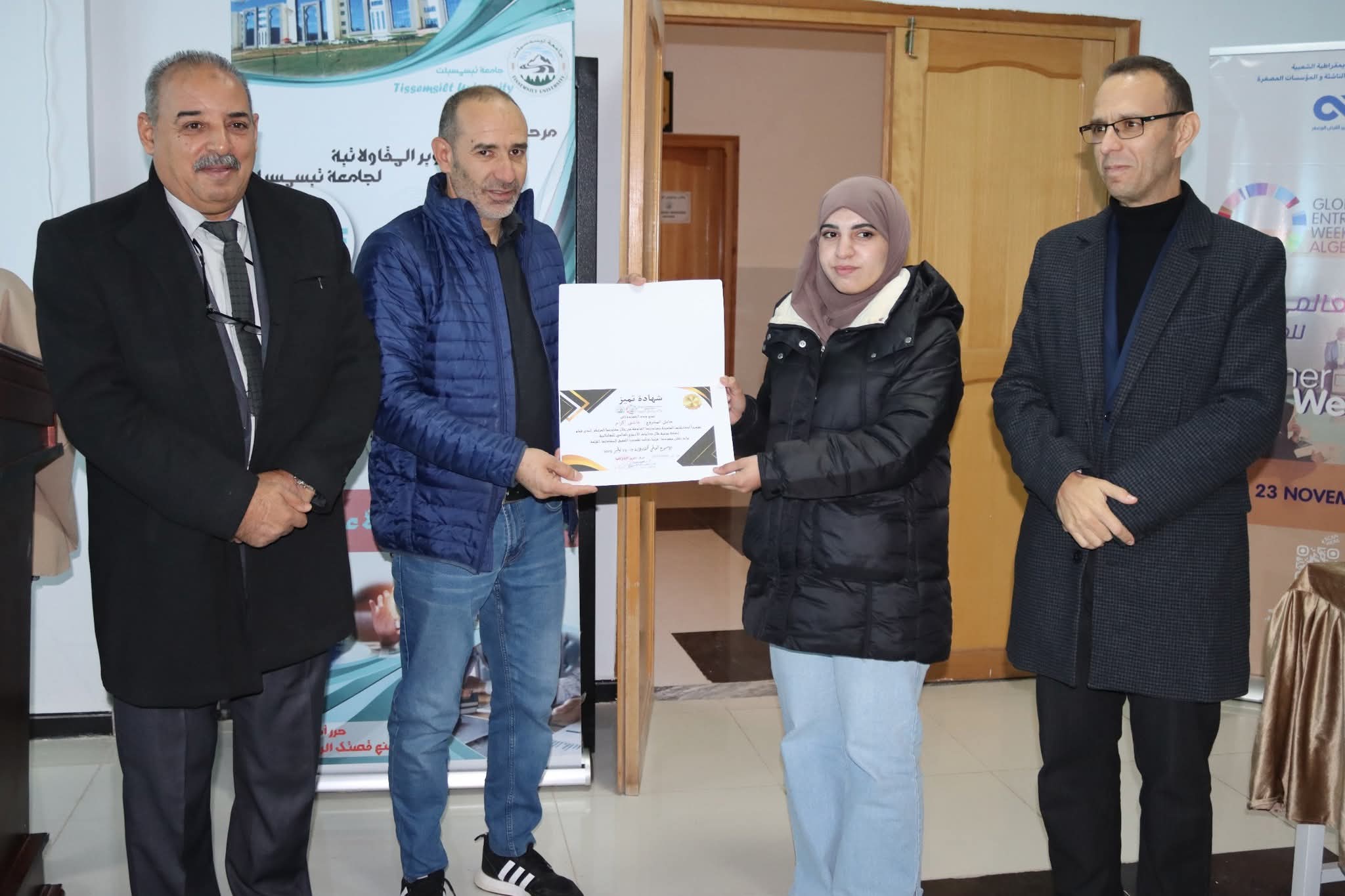 تكريم الطالبة صاحبة مشروع مبتكر ضمن اختتام فعاليات الاسبوع العالمي للمقاولاتية