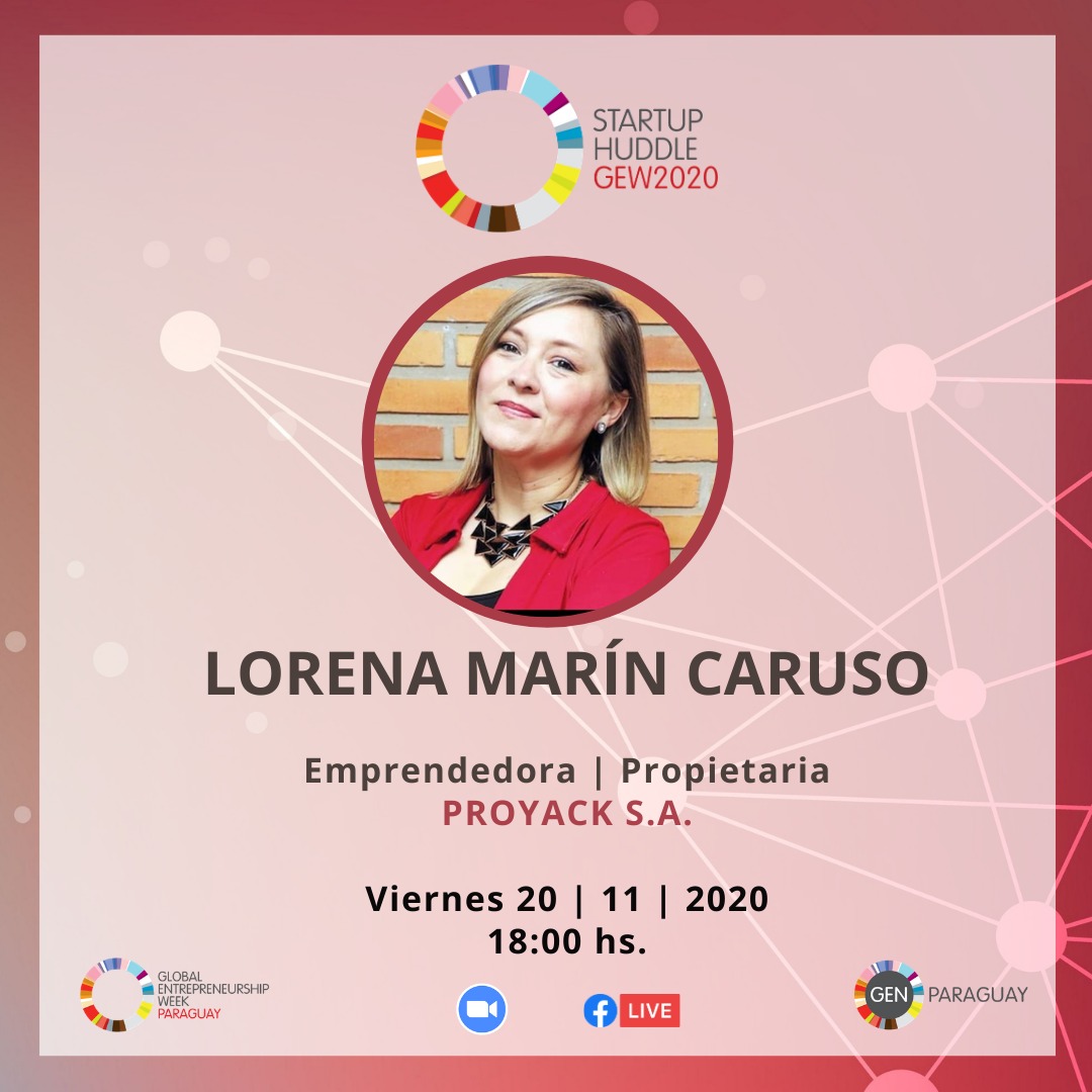 Startup Huddle Asunción para ayudar a los emprendedores locales a perfeccionar sus habilidades de presentación y descubrir soluciones a los desafíos que enfrentan, el viernes 20 de noviembre a las 18 horas a través de la Plataforma ZOOM y el Facebook Live de @GENParaguay presentará a Lorena Marín Carusso | Emprendedora de la Industria Creativa y Diseño, propietaria del negocio textil PROYACK S.A. hace 20 años.