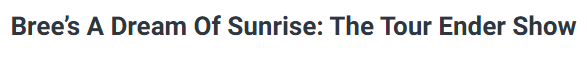 Bree’s A Dream Of Sunrise: The Tour Ender Show