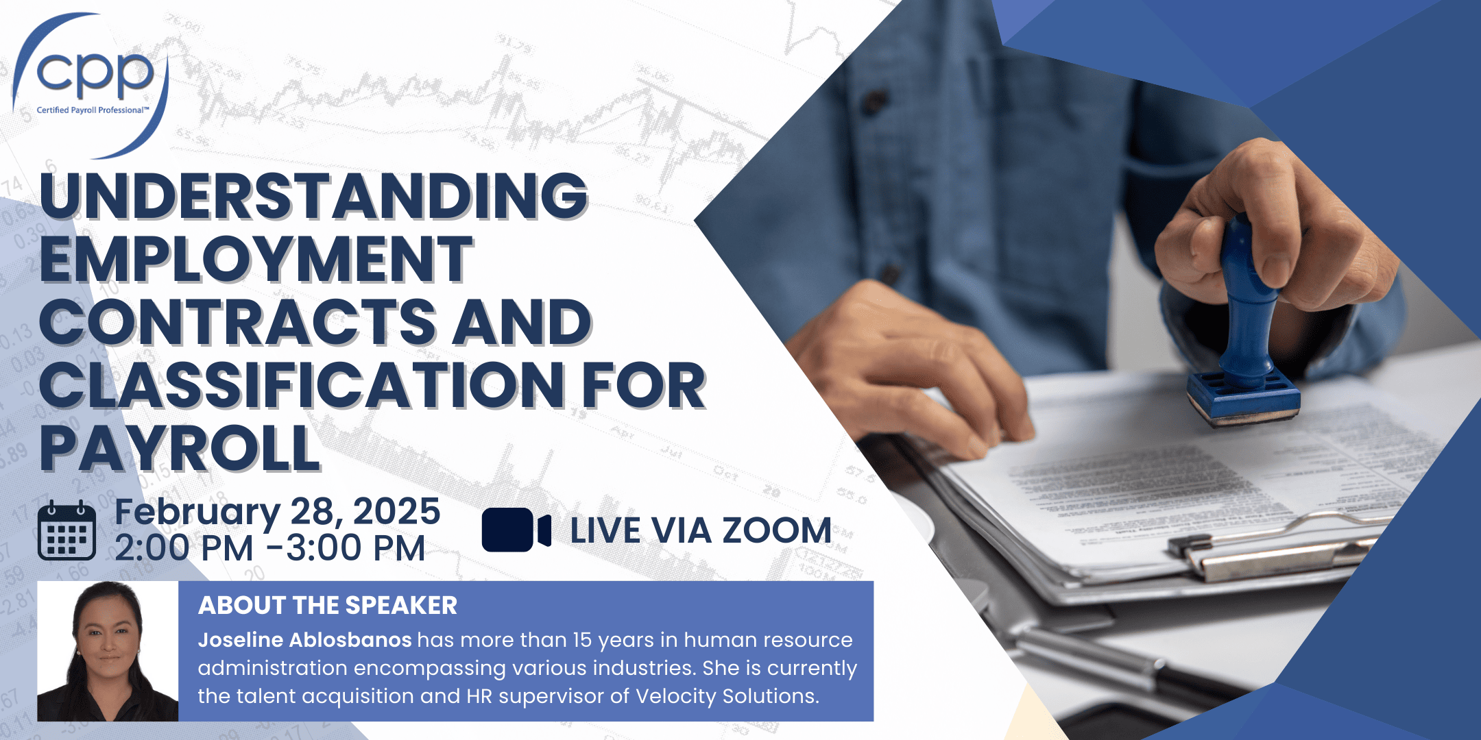 "Understanding Employment Contracts and Classification for Payroll" is a practical session designed to help HR and payroll professionals navigate the complexities of employment agreements and worker classification. This activity covers key contract types, legal implications, and the impact of employee vs. independent contractor status on payroll and compliance. Participants will gain insights into labor laws, tax obligations, and best practices to ensure accurate payroll processing and legal adherence in workforce management.