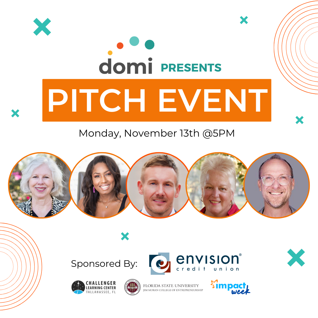 Thank you for showing interest to present your business idea at Domi's Pitch Event on Monday, November 13th @5:00PM at the Challenger Learning Center