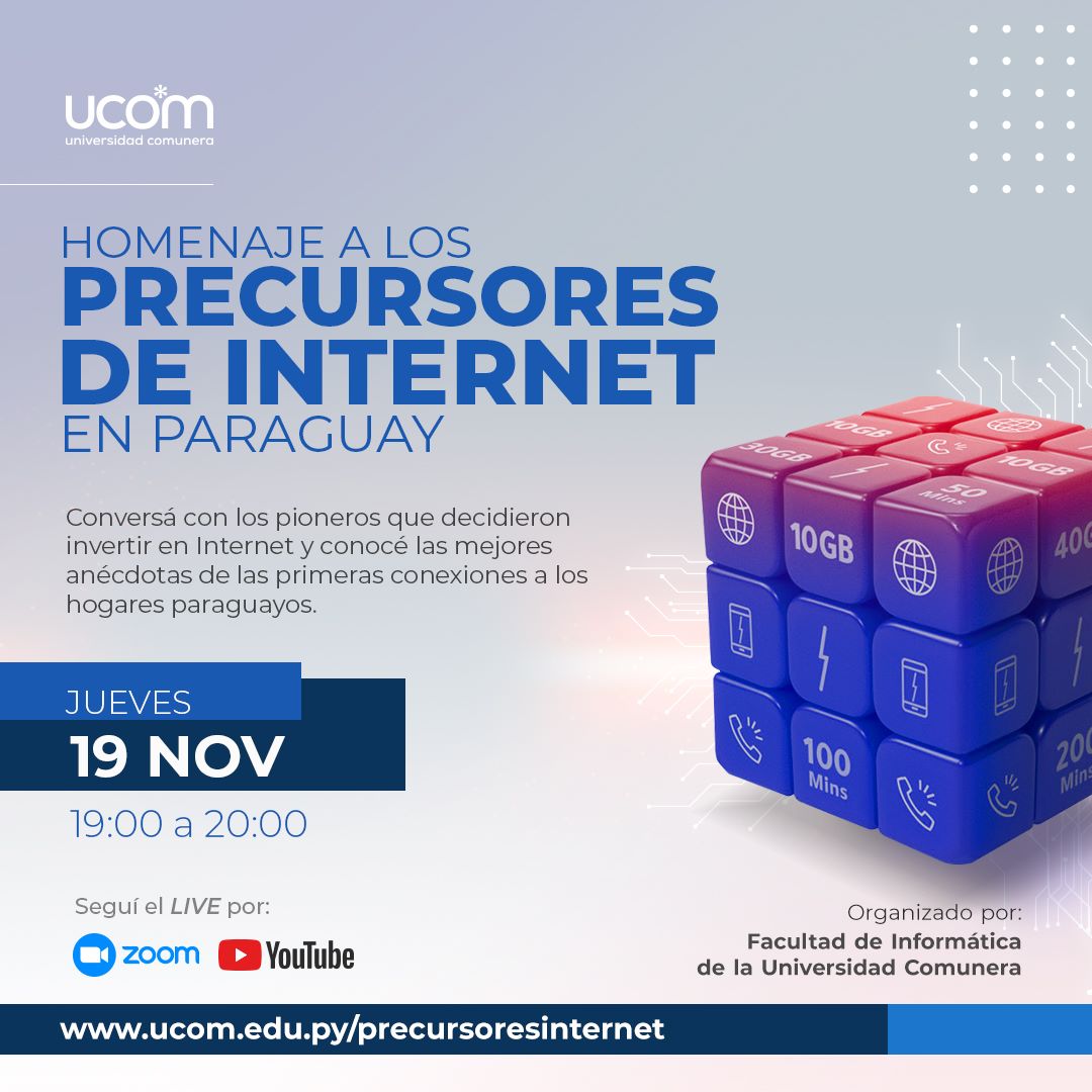 Desde la UCOM te invitamos a participar del Homenaje a los Precursores de Internet en Paraguay, un evento virtual lleno de anécdotas de los pioneros que decidieron invertir en conectividad y contribuyeron a cerrar la brecha digital.