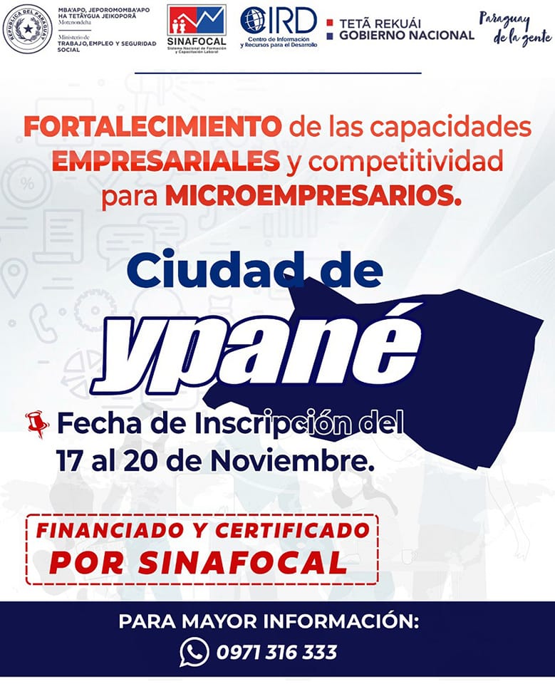 "Programa de Fortalecimiento MICROEMPRESARIAL/PROYECTO MTESS/SINAFOCAL/CIRD para Microempresarios de YPANE!!
