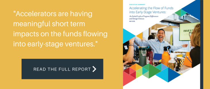 The new report, “Accelerating the Flow of Funds into Early-Stage Ventures: An Initial Look at Program Differences and Design Choices,” is our first report examining performance at the program level across the whole GALI dataset containing data from more than 2,300 early stage ventures that applied to 52 acceleration programs run by 20 different organizations in a range of geographies and sectors.