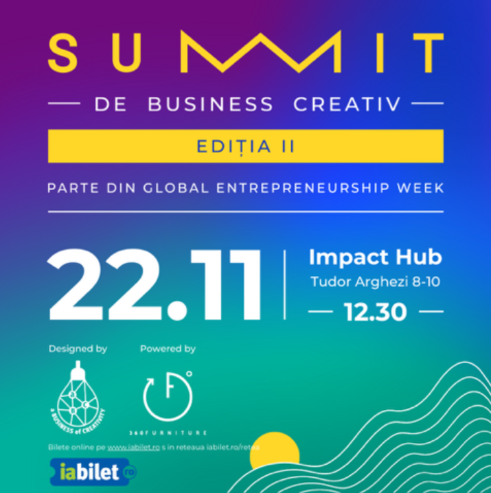 Summit-ul Creativ aBC revine a doua ediție parte din Global Entrepreneurship Week pe 22 noiembrie 2024, la Impact Hub București, între 12:30 și 20:30. Dacă ești arhitect, designer, decorator sau antreprenor creativ, acesta este THE EVENT to be!
