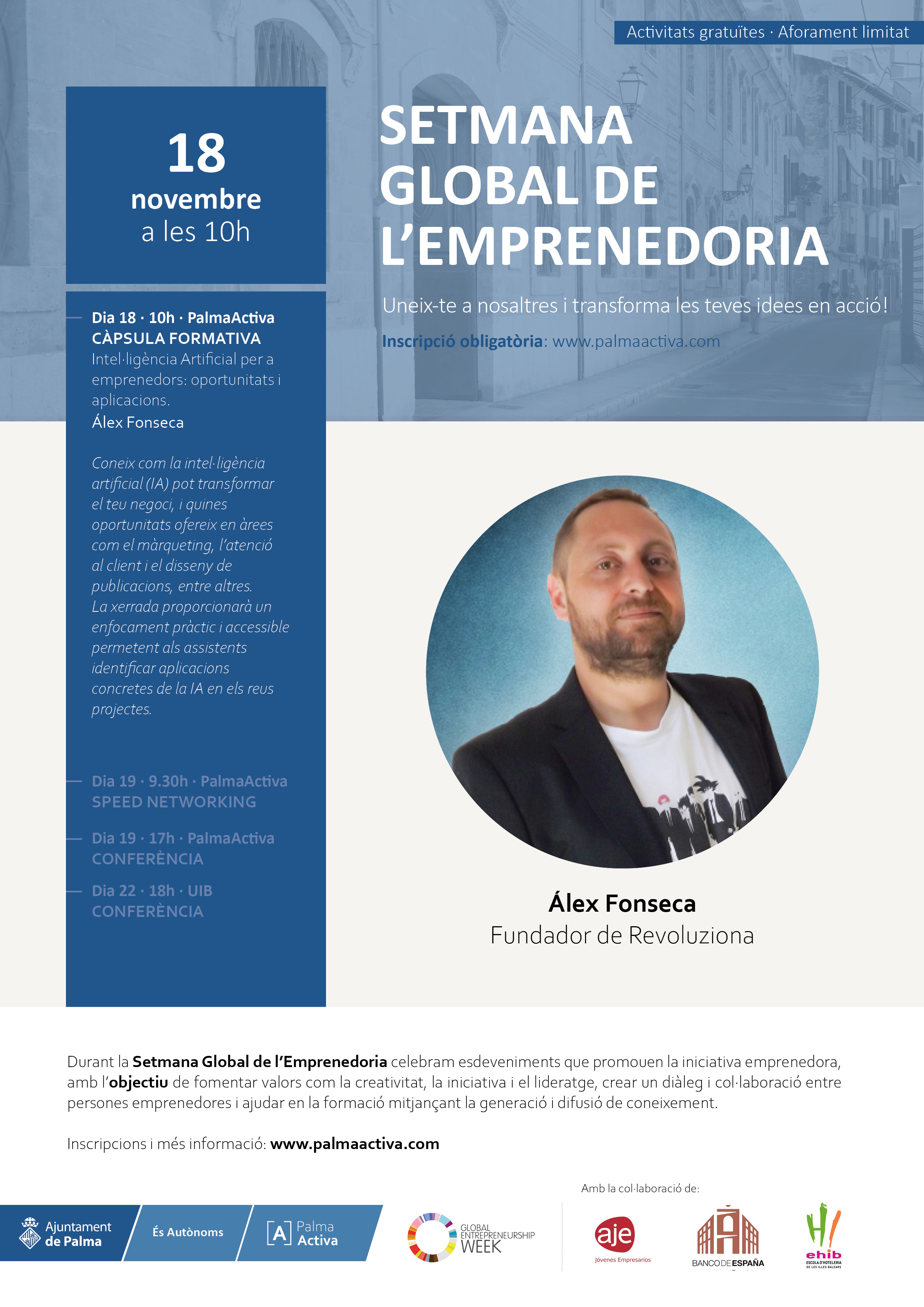 Primarily aimed at entrepreneurial people. Essential: - Interest in technology: Although prior experience in AI is not required, it is important that attendees have a genuine interest in the technology and its application in business. - It is recommended to bring a laptop to explore tools and examples in real time during the talk