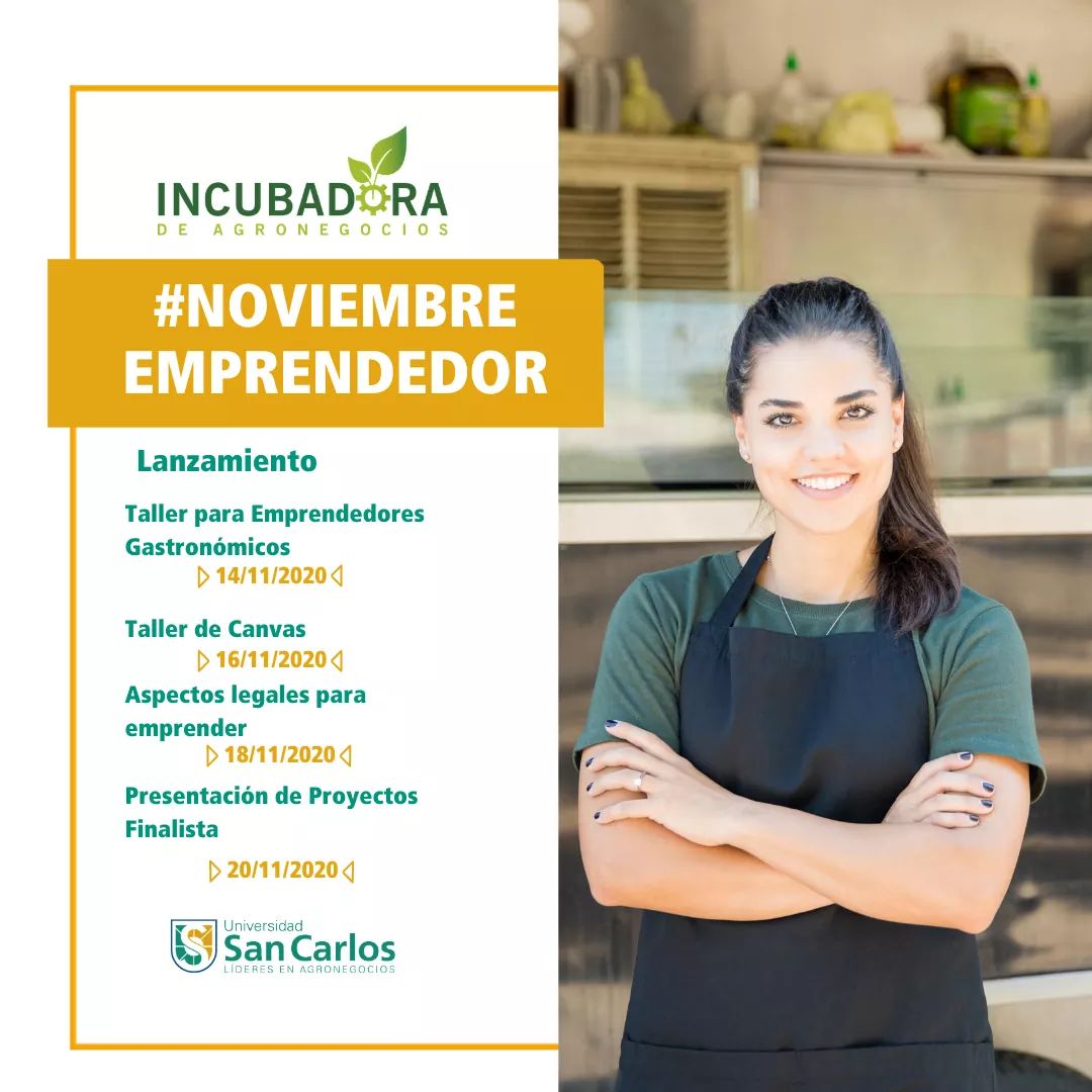 La Incubadora de Agronegocios San Carlos presenta el programa #Noviembre Emprendedor, durante el mes de noviembre que consiste en una Para que aquellos emprendedores que desarrollen un Plan de Negocios participen de la