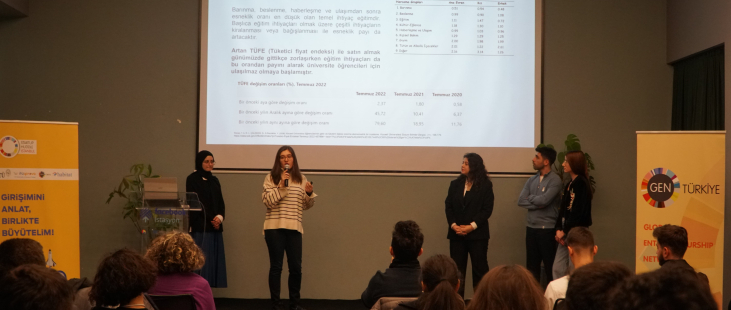 In this program, 2 early-stage entrepreneurs shared their stories "Ellusion" and "KimdeVar" with us. A total of 60 people, including students, academics and entrepreneurs, attended the event. In the program, "Ellusion", the initiative that develops technology for future generations and aims to include the concept of Metaverse in our lives, and "KimdeVarapp", which wants to meet the needs of students with its new generation rental system, introduced themselves.