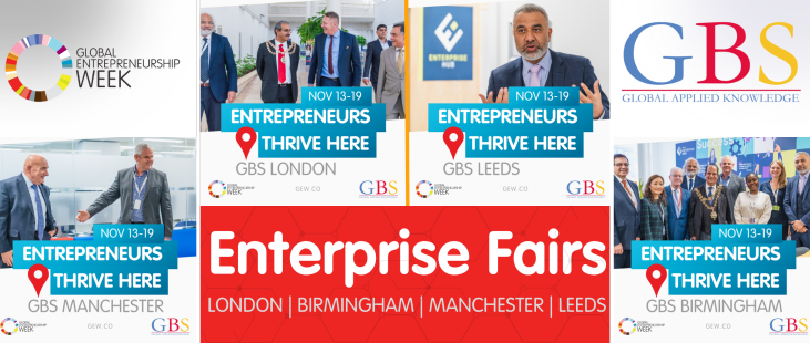 Global Banking School (GBS) is excited to announce the upcoming Enterprise Fairs taking place during Global Entrepreneurship Week from November 13-17 at its campuses across the UK. The fairs are designed to support students in taking their first steps towards selling their products or services, while encouraging others to embark on the same entrepreneurial journey.