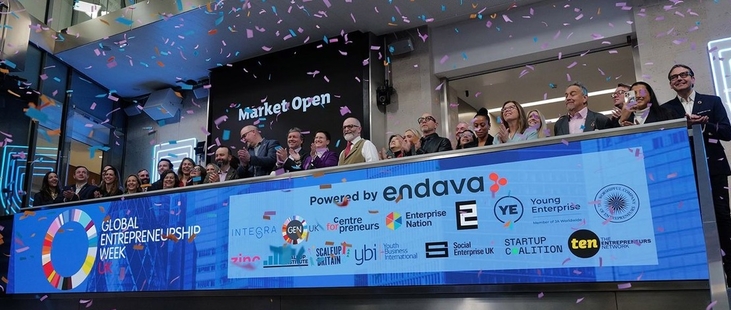 We kicked off Global Entrepreneurship Week UK 2025 by opening the market at the London Stock Exchange, alongside John Cotterell, founder and CEO of Endava and a true champion of entrepreneurship in the UK. John was celebrating the launch of Dava.Rise, their in-house venture acceleration programme to help new tech companies find the big corporate customers they need to succeed. LSE CEO Julia Hoggett underlined the importance of new companies for the health of the market and LSE’s work bringing private and public capital together to fund them.