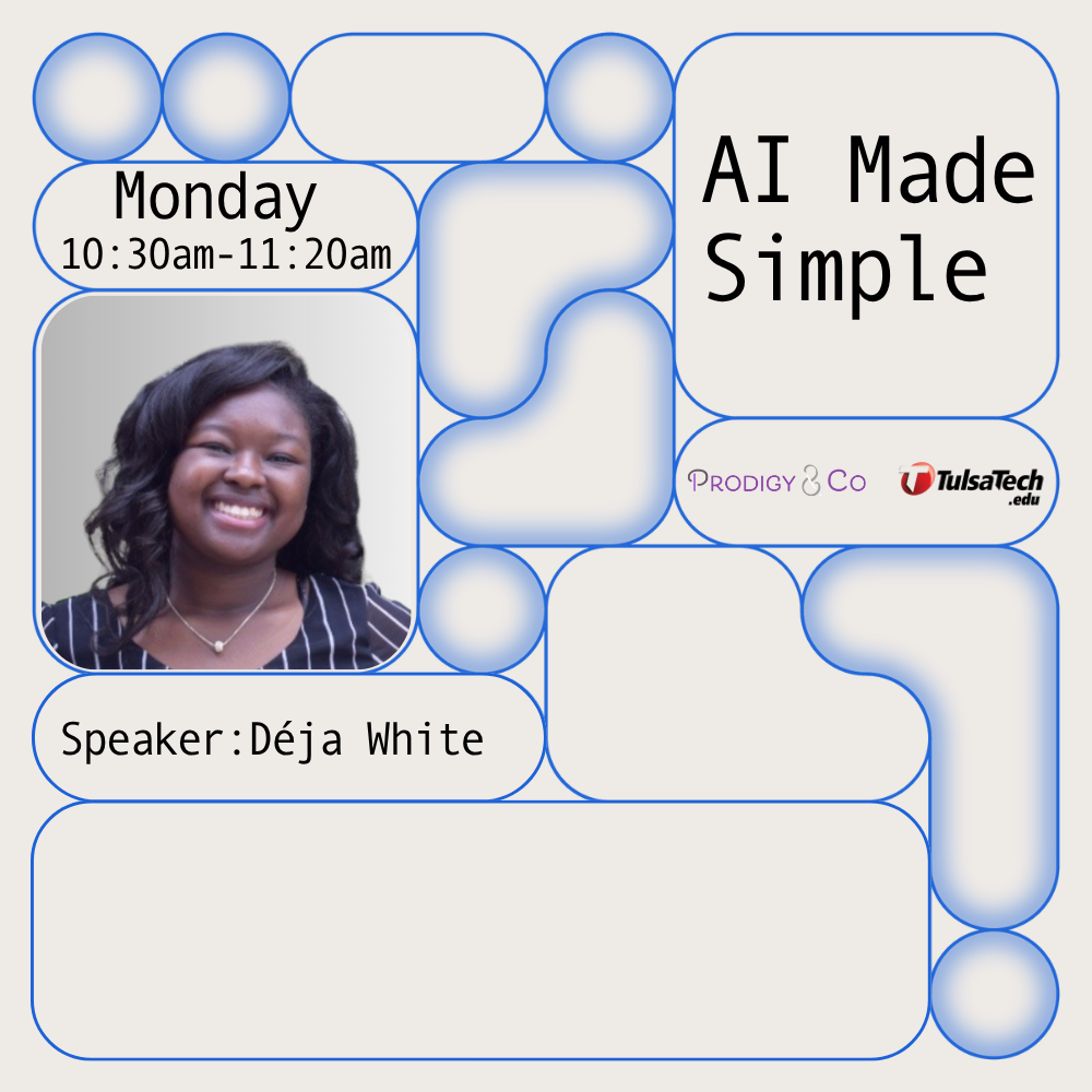 Déja White, representing Prodigy & Co., specializes in helping entrepreneurs adopt modern tools and strategies to build smarter, more sustainable businesses.Event hosted in partnership with Tulsa Tech and Prodigy & Co
