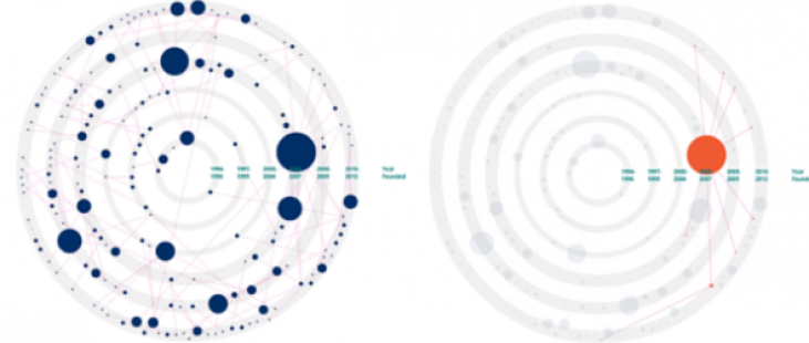 Another fascinating result of this research is the importance of connections between entrepreneurs, and the disproportionate, positive impact they can have on the tech ecosystem. A connection from a highly successful company like Linkshare more than doubles another company’s chances of becoming a top performer itself (from 10 percent to 22 percent). These connections—mentorship, inspiration, angel investment, serial entrepreneurship and former employee spinouts—are the means by which successful entrepreneurs give back to their communities.