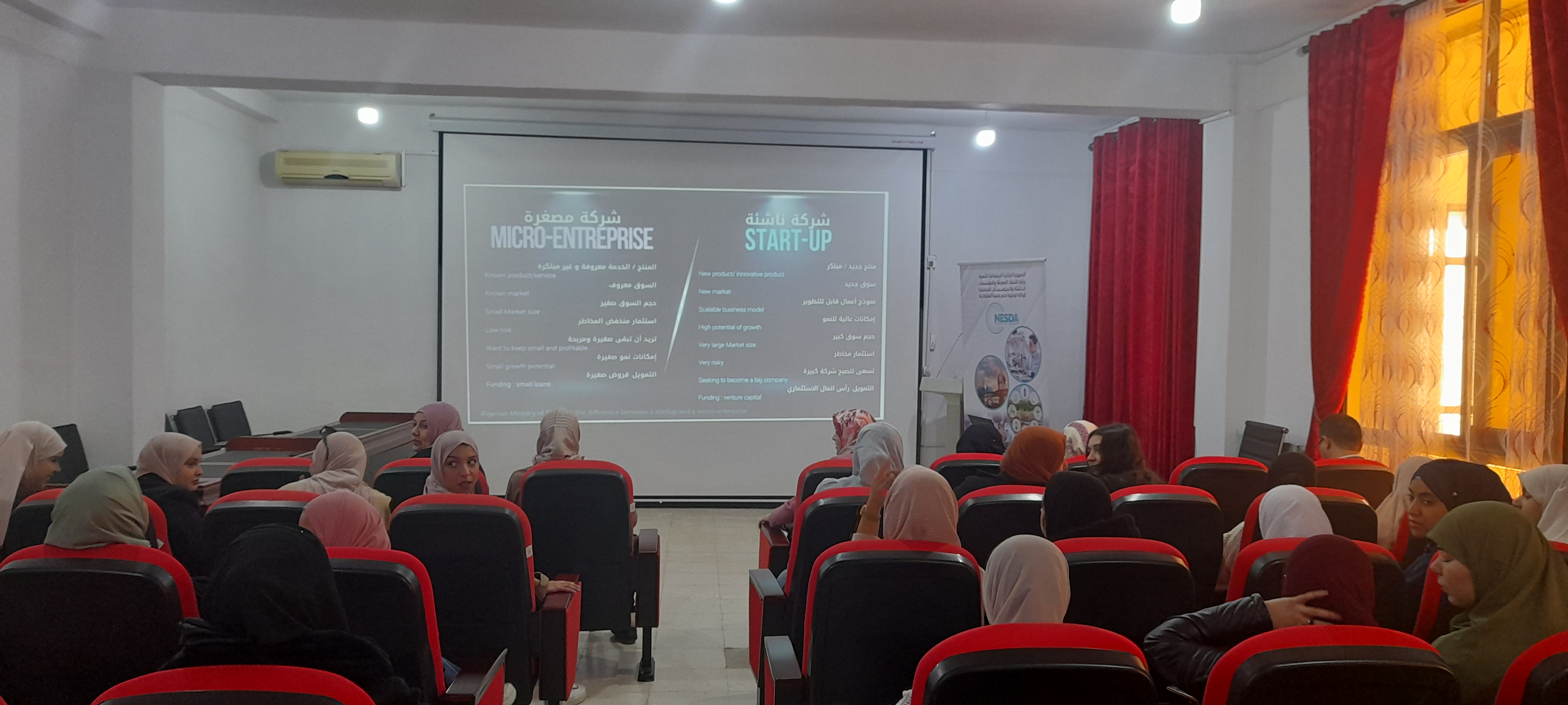 مداخلة من طرف مديرة مركز تطوير المقاولاتية السيد لعلى نورية على مستوى كلية الاداب و اللغات مصطفى اسطمبولي