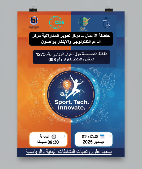 Dr. Bentahar is currently focusing on developing the entrepreneurship environment. He holds the position of Director of the Incubator at Batna 2 University (starting 12/02/2025), a role that was preceded by his presidency of the University-Enterprise Liaison Office (BLEU). He is also an active member of the Scientific Committee of the Incubator and the Technical Committee for Monitoring Startup Projects.