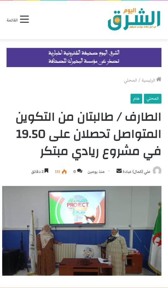 مقال صحفي حول مناقشة مذكرة مشروع مؤسسة إقتصادية بمركز الطارف