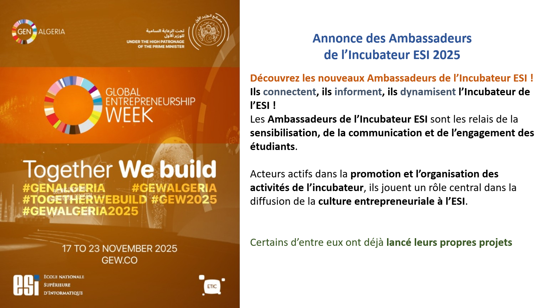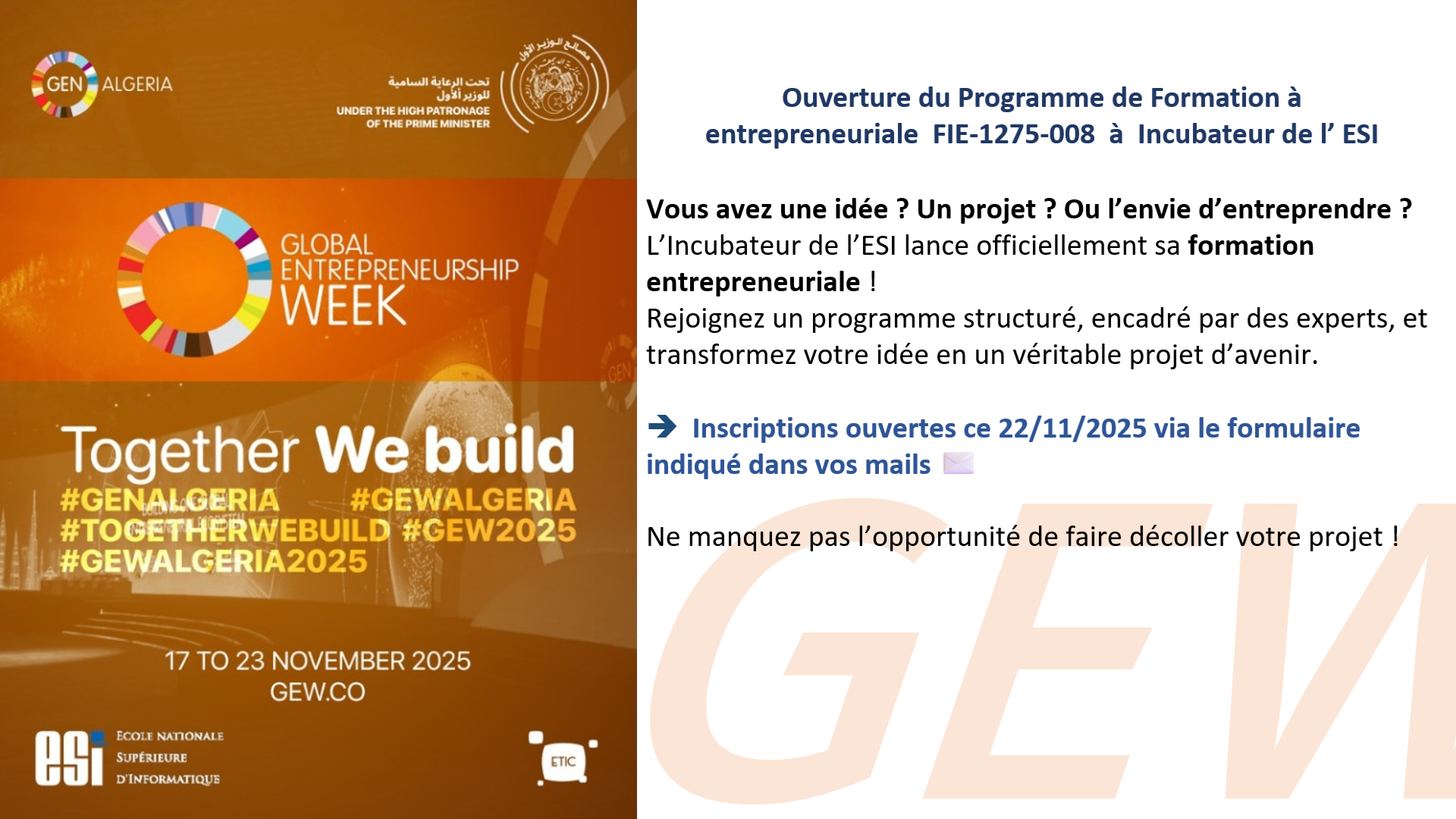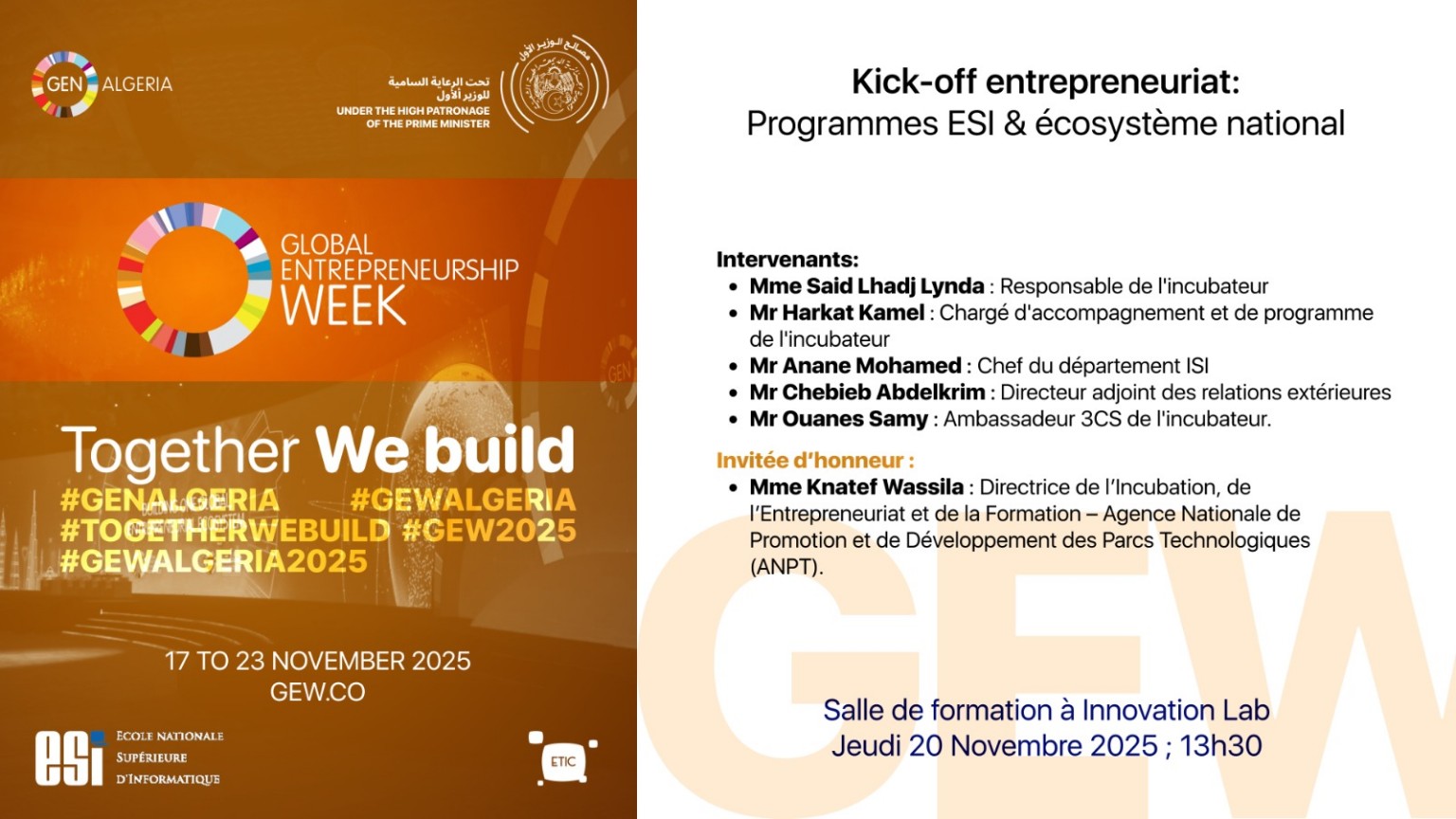 Kick-off Entrepreneuriat – GEW 2025 à l’ESI