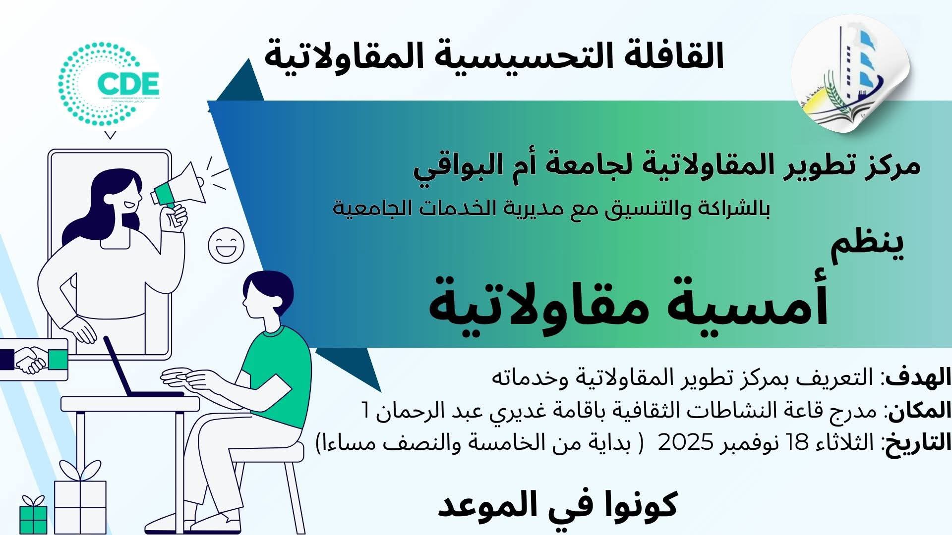 محاضرة بعنوان محاضرة بعنوان دور الجامعة من خلال واجهاتها في تعزيز الوعي المقاولاتي أوساط الطلبة الجامعيين