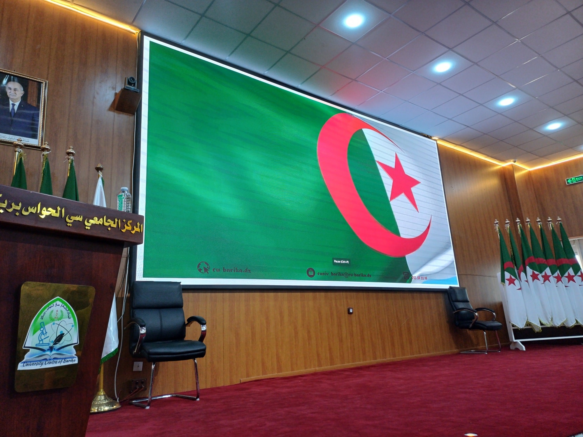 صورة توضح استقبال مدير المركز الجامعي ببريكة والي ولاية بريكة لحضور فعاليات حفل اختتام الاسبوع العالمي للمقاولاتية