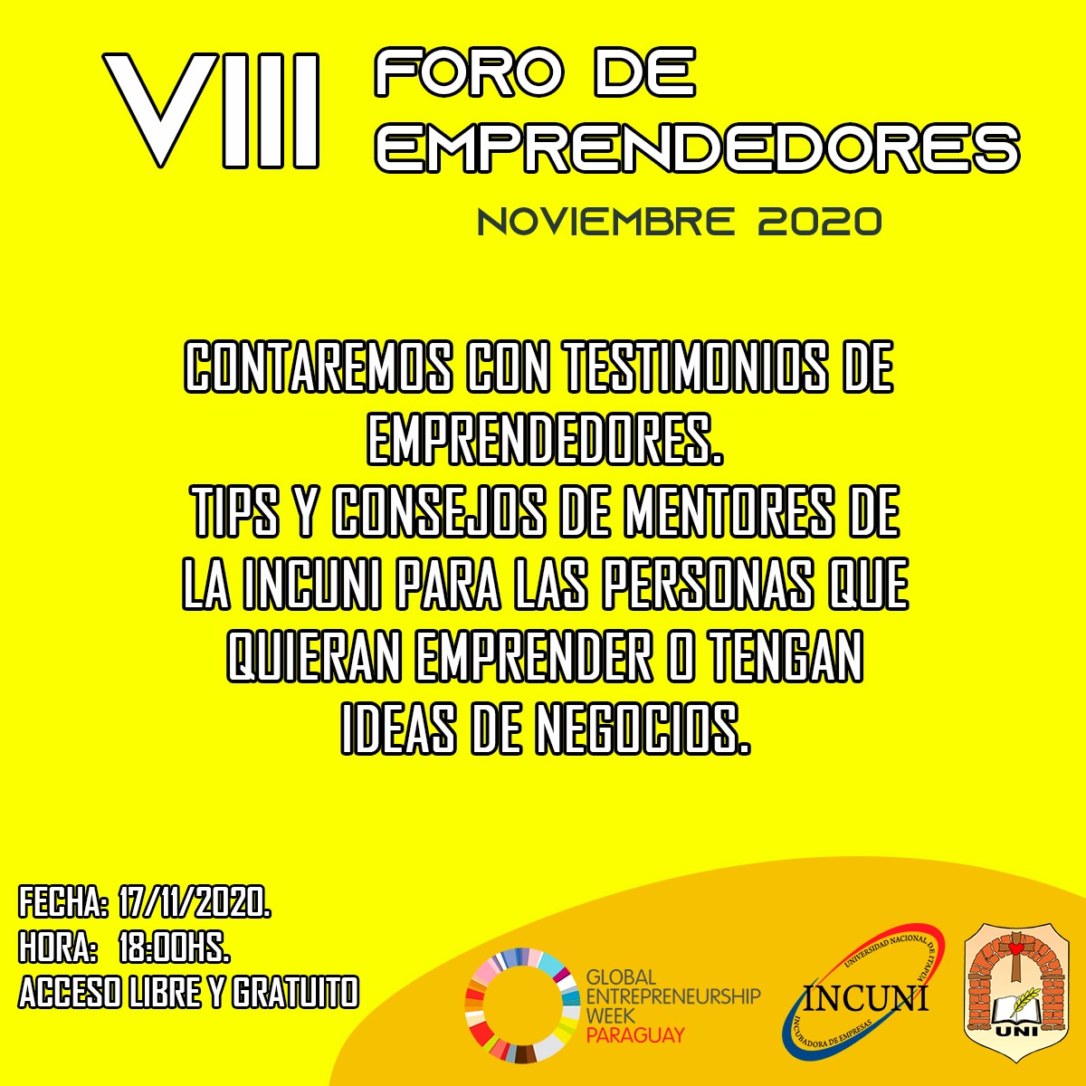 Dirigido a emprendedores, estudiantes, egresados, empresarios y público en general
