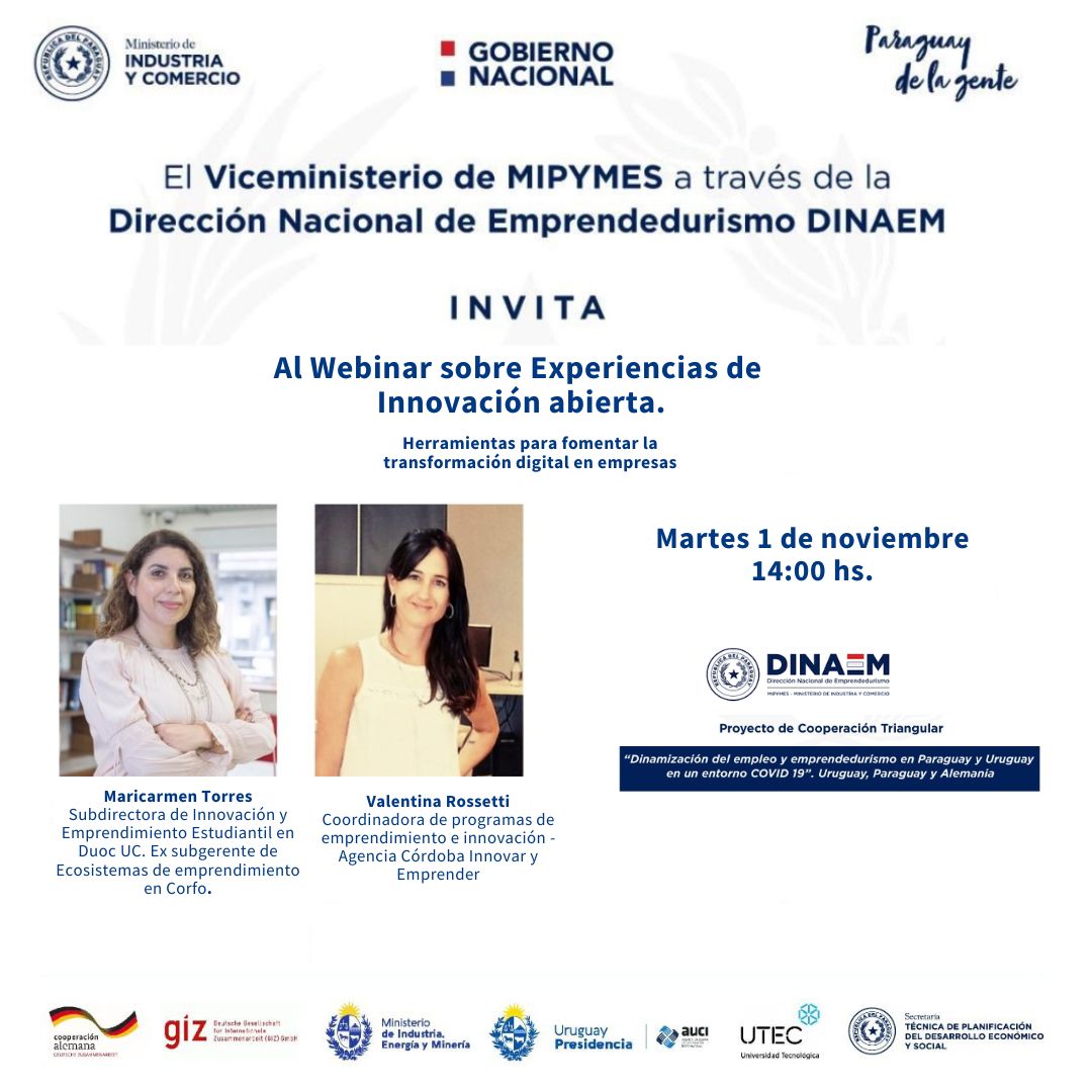 El Ministerio de Industria y Comercio a través de la Dirección Nacional de Emprendedurismo (DINAEM) del Viceministerio de MIPYMES invita al Panel sobre Experiencias de innovación abierta.